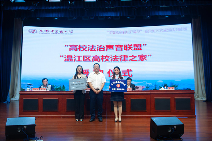 刘毅向四川润方律师事务所、四川公生明律师事务所、北京炜衡(成都)律师事务所3家单位颁发学校入库法律顾问单位聘书,向杨支才等9名专家颁发法律顾问团成员聘书。