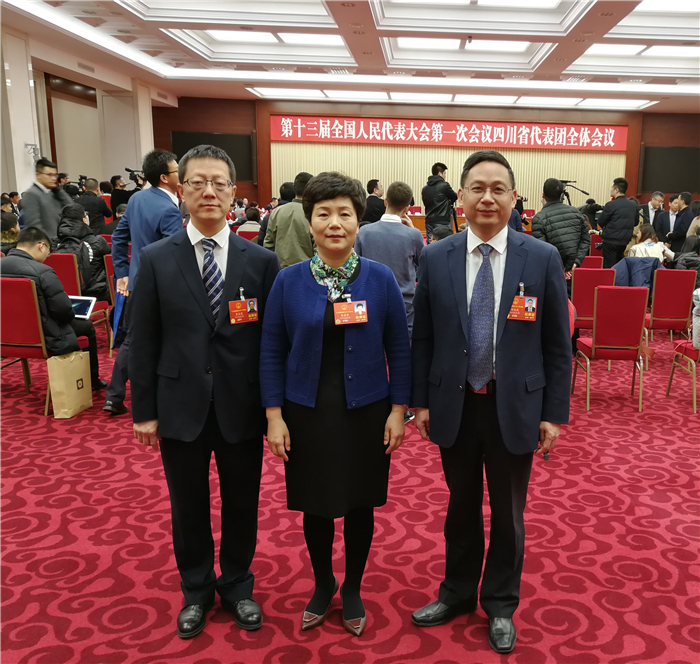第十三届全国人民代表大会正在北京召开,人大代表们都在认真而忙碌地工作着,听取政府工作报告,审议宪法修正案(草案),为国为民建言献策。在他们当中,有三个不同而又相同的身影:他们的职业不同,有高校教师,有政府公务员,有医生;他们的党派不同,有中共党员,有民盟盟员,有农工党员;他们的地域不同,有的来自成都,有的来自广元。但他们都是四川团的全国人大代表,他们都是beat365在线唯一官网的校友,更令人惊奇的是他们是同门同学。30年前,他们负笈求学,成为beat365在线唯一官网医学系中医学专业81级同学;他们在同门学习毕业30年后,相聚北京,作为人大代表,共同履行神圣使命。