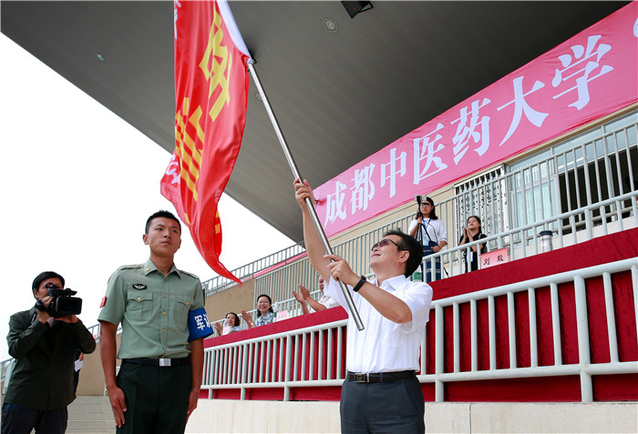 上午十点,在雄壮的国歌声中,成都中医大学2017级新生开学典礼正式开始。6000余名新生满怀激情与梦想接受成中医隆重庄严的欢迎仪式。出席开学典礼的校领导有刘毅、余曙光、沈涛、彭成、延建明、徐廉、杨静,各学院党政领导和职能部门负责人,教师代表和学生代表。开学典礼由党委副书记沈涛主持。