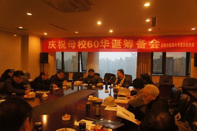 与会代表认真而热烈地讨论了母校60华诞庆祝活动的具体事宜,形成九条具体措施:一是联络重庆新闻媒体隆重宣传60年来重庆校友中的名医、名药、名企;二是向母校赠送由重庆校友亲自创作的书法作品;三是尽可能促成“太极科技中心楼”在校庆日前建成为母校献礼;四是在重庆举办一场庆母校60华诞学术交流会,并选出一名代表参加学校校庆学术交流发言;五是在重庆举办一场“我为母校添光彩”的演讲活动;六是在重庆组织一次“庆母校60华诞名医义诊”活动;七发动重庆校友为校庆撰写纪念文章;八是发动重庆校友为母校华诞捐款捐物;九是利用校庆活动完善重庆校友名录,发动更多的校友回母校参加纪念日活动。