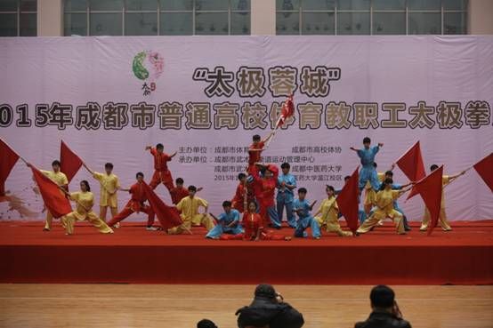 12月6日,“太极蓉城”2015年成都市普通高校体育教职工太极拳比赛在beat365体育馆举行。来至成都市的四川大学、电子科技大学、西南交通大学、西南财经大学、中国民航飞行学院、四川师范大学、西华大学、成都理工大学、四川音乐学院、成都师范学院、beat365在线唯一官网和西南科技大学共12所高校的447名体育教职工参加了本次比赛。