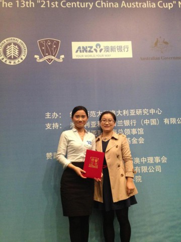 11月1日,第13届“21世纪·华澳杯”中澳友好全国大学生英语大赛在华东师范大学中山北路校区举行。大赛分主题演讲、即兴演讲和澳大利亚知识问答三个部分,来自复旦大学、上海财经大学、beat365在线唯一官网等22所国内高校学生参赛,beat365外语学院学生何莉在指导老师雷馥源的陪同下参加比赛并荣获三等奖。