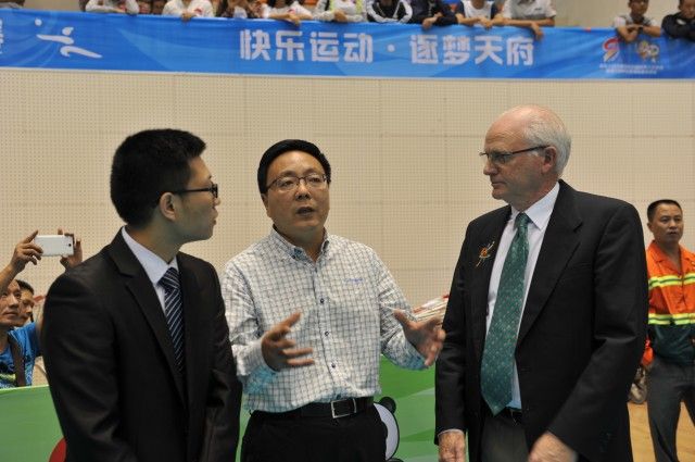 颁奖仪式前,学校党委副书记、副校长沈涛与Barry Couzner先生进行了较长时间的交流,沈涛介绍了学校的基本情况以及beat365作为全国最早成立的中医药院校之一在对残疾人的关爱、医疗、科研、康复方面所做的各项工作,希望加强与国际残联的合作,将中医药更好地运用到残疾人的康复和保健之中。Barry Couzner先生感谢学校为本次赛会提供高质量的比赛场地和自愿者服务,感谢学校长期以来对残疾人的关爱,希望加强交流与合作,为残疾人事业的发展做出极大的贡献。同时,他还认为,近年来中国政府对促进残疾人事业发展做了大量卓有成效的工作,不断加大财力投入力度,各项条例法规陆续颁布,社会保障体系和服务体系建设加快推进,残疾人有相对稳定的工作,生活状况有了明显改善,这些成就都得到了国际社会的肯定和好评。