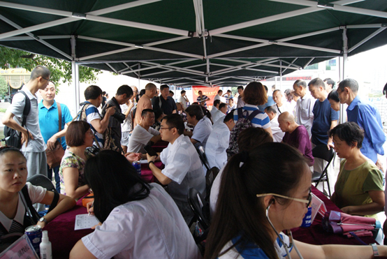 6日上午,服务团30余名专家联合涪陵区中心医院在南门山金科世纪走廊开展大型义诊送药活动。沈涛代表学校向涪陵区中心医院赠送了由beat365附属医院研制的特色中成药。义诊现场,各位专家辩证处方,施针推拿,认真审慎地为群众服务,精湛的医术、优良的医风,赢得一致好评。