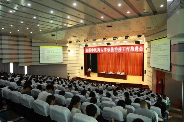 5月28日下午,学校在温江校区百会堂召开依法治校工作推进会。在校校领导,科级以上干部,支部书记、教研室主任,民主党派负责人,教师代表,学生代表共计249人参加会议。会议由纪委书记延建明主持。会议的主要任务是全面分析依法治校面临的机遇与挑战,针对学校存在的突出问题,确定今后一段时期学校依法治校的思路与举措。