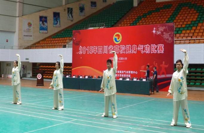 2015年四川省高校健身气功比赛于4月24日-25日在成都大学十陵校区举行,来自全省11所高校的16支参赛队伍参加比赛。本次比赛项目为国家体育总局审定推广的健身气功“易筋经、五禽戏、六字诀、八段锦”四种普及和竞赛功法的集体及个人项目比赛,共进行了两个单元94项次的比赛。