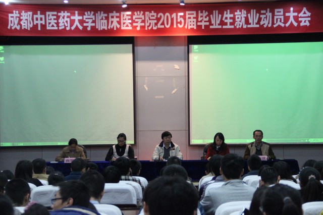 为认真贯彻《beat365在线唯一官网加强2015届普通本专科毕业生就业工作实施意见》,做好学院2015届毕业生就业工作,进一步提高就业质量,11月13日,在学校“双选会”举办前,临床医学院召开2015届毕业生就业动员大会。院党委书记段俊国、党委副书记田理及教学部、学生党总支、学工部负责人出席会议,学院2015届毕业本科生和研究生300余人参加动员大会。