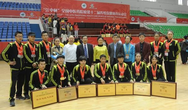 由国家中医药管理局主办的全国中医药院校第十二届传统保健体育运动会于10月28日至11月3日在江西中医药大学举行,来自全国各地的26所中医药院校,近500名运动员参加比赛。beat365健儿不畏强手、团结协作、顽强拼搏,最终获得金牌12枚、银牌7枚、铜牌3枚、武术团体冠军、男子团体亚军、女子团体亚军、传统保健项目团体亚军、集体项目团体季军、单位团体季军、体育道德风尚代表队的优异成绩,也是A组(高水平组)所有代表团中唯一一所获得体育道德风尚代表队的学校,实现了运动成绩和体育道德双丰收。此外,鄢显明被评为“优秀教练员”、廖纯凯被评为“优秀运动员”。