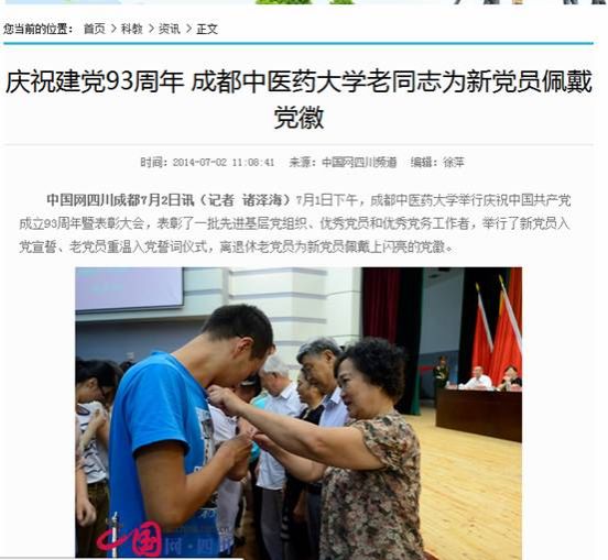 7月1日下午,学校举行庆祝中国共产党成立93周年大会,表彰了一批先进基层党组织、优秀党员和优秀党务工作者,举行了新党员入党宣誓、老党员重温入党誓词仪式。活动进行中,四川电视台科教频道到现场作采访报道,《教育导报》、中国网、四川经济网等媒体关注报道。以下是报道详细情况:
