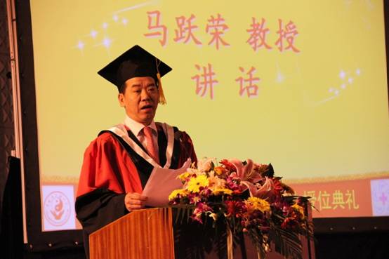 马跃荣向为学校高层次人才培养工作付出辛勤劳动的导师们表示亲切慰问,向勤奋求学并顺利完成硕士学业的同学们表示热烈祝贺。他指出,同学们在难能可贵的三年时光里,克服种种困难、积极探索、孜孜以求,在品尝科学研究酸甜苦辣和体会临床实践喜怒哀乐的过程中,吸取失败教训、总结成功经验,最终圆满完成学业。导师们严谨的治学态度和求真务实的科学精神,既是研究生培养质量的重要保证,更是研究生同学们受益终生的巨额财富。希望同学们不仅能正确树立自己的人生梦想,志存高远、自强不息,抓住同祖国和时代一起成长与进步的机遇,努力成为中医药发展进步和中华民族振兴的栋梁,为母校赢得荣誉,为社会做出贡献。