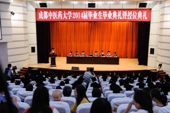 6月17日,学校2014届毕业生毕业典礼暨学位授予仪式在温江校区百会堂举行,校领导马跃荣、梁繁荣、沈涛、安劬、余曙光、彭成、徐廉、傅春华和各学院党政负责人出席典礼,党委副书记、副校长沈涛主持典礼,学校博士研究生导师、2014届博士、硕士、本专科毕业生代表和毕业生亲友代表参加典礼,典礼在庄严的《国歌》声中拉开序幕。