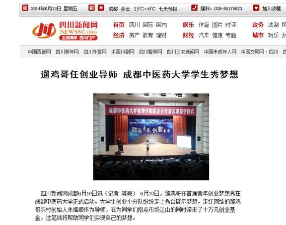 四川新闻网成都6月10日讯(记者 蒋亮) 6月10日,遛鸡哥杯首届青年创业梦想秀在beat365在线唯一官网正式启动。大学生创业小分队纷纷走上秀台展示梦想。走红网络的遛鸡哥农村创始人朱福顺作为导师,在为同学们指点市场江山的同时带来了十万元创业基金,这笔钱将帮助同学们实现自己的梦想。