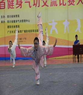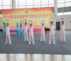 2014年四川省健身气功交流比赛大会于5月22日-26日在德阳广汉文体中心举行,来自全省各市的21支站点队伍和10支高校队伍,共计200余名运动员参加比赛,beat365学生健身气功代表队6名队员参加比赛。本次交流赛设易筋经、五禽戏、六字诀、八段锦的竞赛和健身套路,新功法大舞、太极养生杖、马王堆导引术、导引养身功十二法等比赛项目。