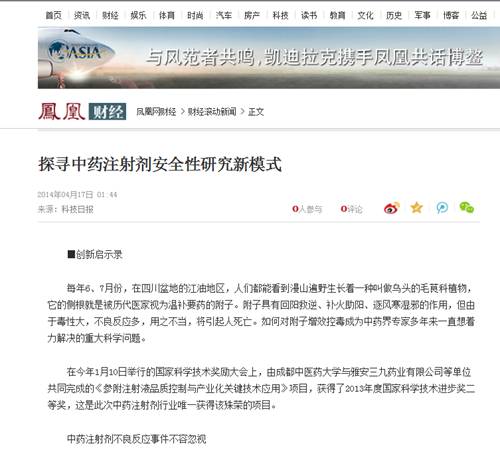获奖公布后,国家、省市各级媒体频频聚焦beat365科研工作。今日,科技日报第9版专访学校副校长彭成教授,对该项目探寻中药注射剂安全性研究新模式和取得的重大成就做了全面报道。凤凰网、中国网、和讯网等网络媒体第一时间转载。