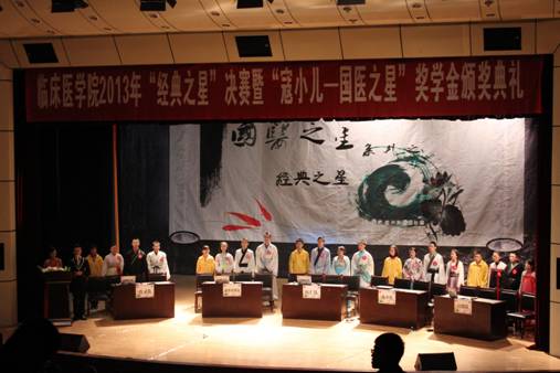 临床医学院本学期举办的“国医之星”系列活动包括西诊之星、中诊之星、经典之星和学术之星,经过初赛、复赛和决赛,共有34名学生和9个班集体获得“寇小儿·国医之星”奖学金。