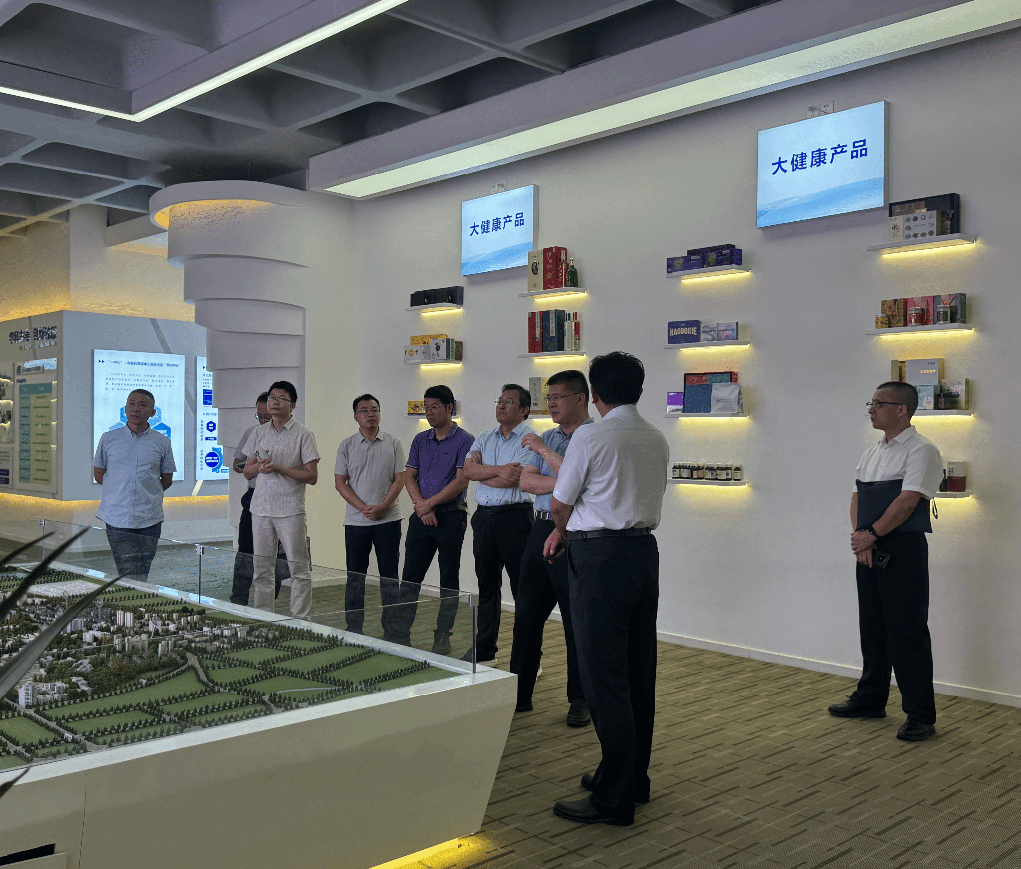 随后,调研团队前往中医大健康谷实地参观,进一步考察中医药产业与多领域融合的实践探索。调研过程中,刘贤武就学校成果转化探索与实践进行了汇报。双方就高校在政产学研用深度融合、跨学科协同创新等问题展开深入交流。