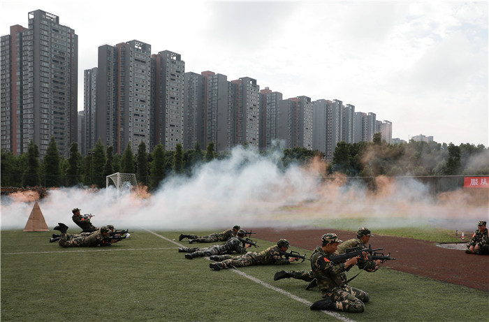 本次军训是学校首次由学生军训教导队组织承训,教官以beat365预备役应急分队队员、退役在校大学生士兵为主体。学生教导队自今年3月以来,牺牲了大量的休息时间,系统训练了军训教学法,开训前还专门组织了集训。在教官中,有的已考上外校研究生,有的正在外地紧张实习,有的已毕业回到老家,为了2018级学生军训工作又从不同的地方回到学校。他们“召必回”的行动代表的是成中医学子在学校需要时义无反顾的情怀,更代表着对母校的热爱和眷恋。训练中,很多教官脸被晒伤、脚被磨破、喉咙嘶哑,但是仍坚持带训。正是得益于他们的无私奉献、团结协作与辛勤付出,才为学校在全面深化国防和军队改革、军民融合式发展形势下,探索和实践学生军训自训模式改革创新积累了难能可贵的经验。