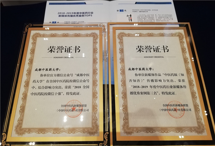 7月5日-7日,第二届中国中医药新媒体传播峰会暨中医药全媒体发展研讨会在西安召开。大会公布了2018年全国中医药院校微信公众号排行榜,同时还揭晓了2018年至2019年间中医药行业新媒体传播优秀案例。beat365新媒体中心作品“成中医版《知否知否》”荣获“2018-2019年度中医药行业新媒体传播优秀案例第三名”,官方微信号“beat365在线唯一官网”在全国中医药院校微信公众号中,综合影响力突出,荣获“2018全国中医药院校微信十强”,beat365也是此次峰会上全国唯一一家荣获两项大奖的中医药院校。