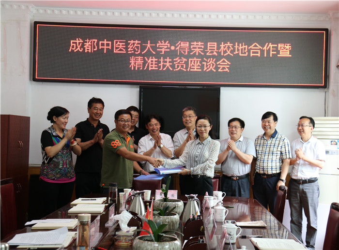 座谈会上,杨静与缪荣签订《得荣县奔都乡木格村自主建房帮扶协议书》。段俊国与甲玛签订《成都中医大银海眼科医院托管得荣县人民医院眼科合作协议》。得荣县委副书记李南希,副县长缪荣、拉西、降巴吉村,县脱贫攻坚办公室、科技局、卫生健康局、林业和草原局、奔都乡人民政府负责人和beat365相关同志参加座谈会。