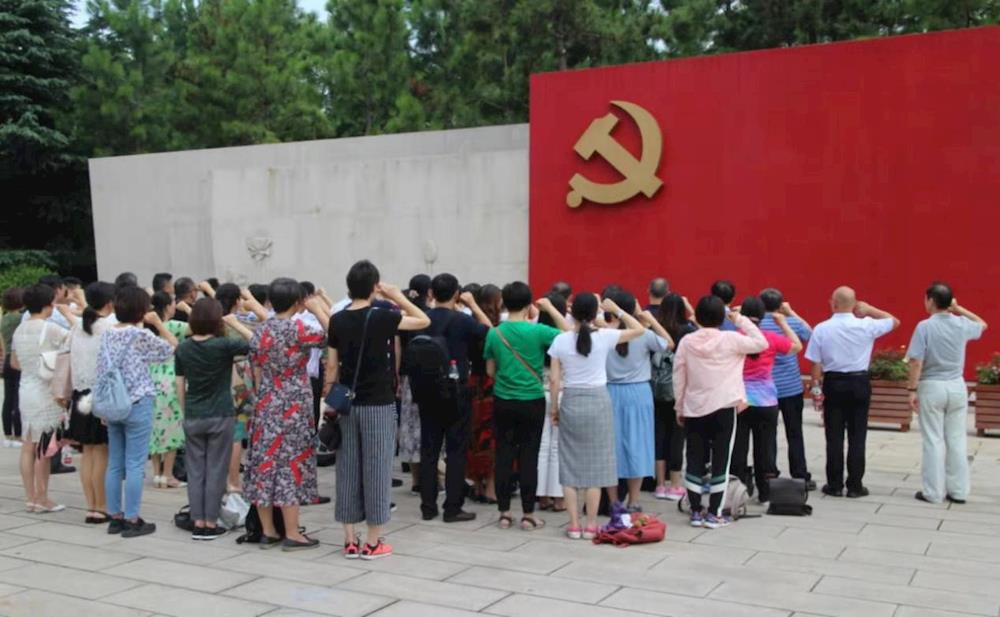 带着敬仰、振奋之情,党员们站在南湖革命纪念馆的誓言墙前,统一佩戴党徽,举起右拳,在党委组织部部长王军的带领下,面朝党旗庄严宣誓,表达不忘初心,牢记使命的坚定决心和践行新思想,展现新作为的奋斗之志。