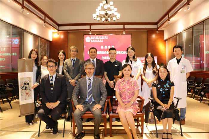 座谈会上,皮肤科肖敏副主任向代表团介绍了医院皮肤科的发展情况,包括中医特色优势、主要特色治疗、科室成果展示等。皮肤科黄莺主任医师就中医药修复再生临床研究与医学美容做了专题交流。日兴制药株式会社代表富永真史先生介绍了日本美容医学研究会及公司情况、特别就防治损容性皮肤病的药妆产品研发等情况进行了交流。