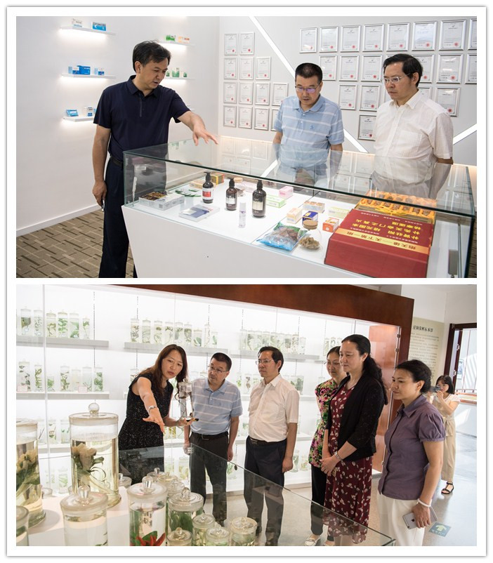 苗勇、李长春一行首先参观考察了成中医健康谷、学校博物馆、中药标本中心。他们了解了“中医大健康谷”双创综合平台的重点实验室创新药物及院内专利研发成果展示、大健康产品展厅,以及校院企地深度融合模式。在中医药传统文化博物馆里,各种道地药材、标本绿植,以及汉代画像砖、铜药臼、药王像等一件件药物标本和医史文物,穿越千年时空,反映出中国传统瑰宝中医药的博大精深。苗勇、李长春一行一边参观,一边与讲解人员亲切交谈,对beat365创新研究发展以及对中医药事业发展的贡献给予了高度肯定和赞扬。