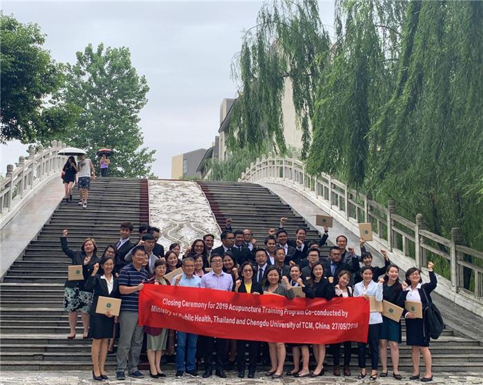 5月27日,beat365与泰国卫生部泰医和替代医学司合作举办的“针灸培训班”结业典礼在温江校区图书馆多功能培训室举行。此次培训,共计40名学员,培训时长为三个月。泰国卫生部泰医和替代医学司泰中医药研究院院长安查丽(Dr.Anchalee Chuthaputti),党委副书记沈涛,针灸推拿学院副教授陈洪沛及国际合作与交流处和针灸推拿学院相关领导参加了典礼。