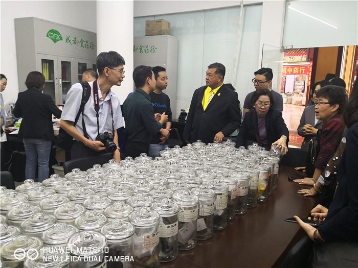 下午,对成都市食品药品质量检验研究院进行参观和会谈,特别对我省的不良反应监测情况和监测方法进行了解。Marut Jirasrattasiri表示四川将中医药产业做到如此规模,并且对中医药的不良反应监测如此先进,是泰国需要借鉴和学习之处。