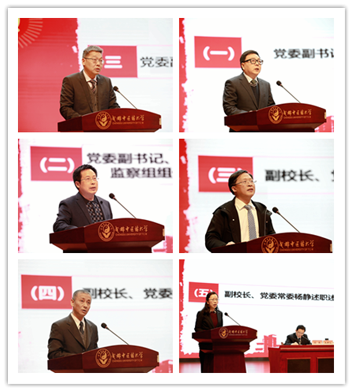 随后,学校党委副书记、校长余曙光,党委副书记沈涛,党委副书记、纪委书记郑学斌,副校长彭成、徐廉、杨静依次述职述廉。