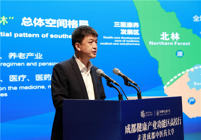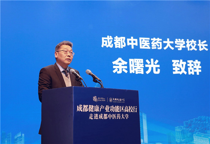 余曙光在致辞中指出,中医药植根于中华传统文化,是中国古代科学的瑰宝,是打开中华文明宝库的钥匙。中医药健康产业具有产业链长、业态多样、认可度高等特点,在乡村振兴、养生保健治未病服务、重大疾病防治、重大新药创制、重大技术攻关、装备制造、慢病康复等方面均独具特色和优势。为贯彻四川省委、省政府“一干多支”发展战略,助力打造四川省“5+1”现代产业体系,落实《成都市人民政府与beat365在线唯一官网深入推进全面创新改革,共建世界一流中医药大学战略合作框架协议》内容,学校将以实现健康产业高质量发展目标,大力度推进与政府、企业及校友各领域的深度合作,着力推动人才、技术、项目、资金等创新要素资源聚集到产业功能区,共同推进“一流大学”和具有国际影响力的成都健康产业高地的建设。