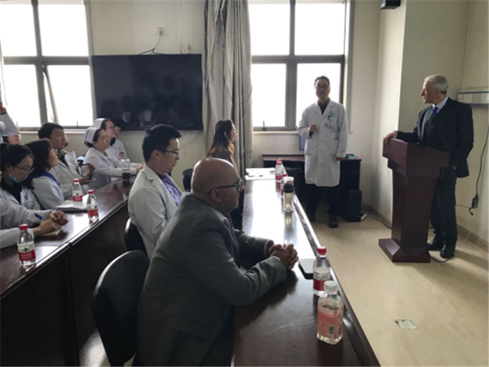 Leonard M. Shapiro(剑桥大学附属阿登布鲁克医院、皇家帕斯洛医院)赴介入手术室观摩指导,并与心血管二科、一科等专家和医护师生等进行了专题学术交流。