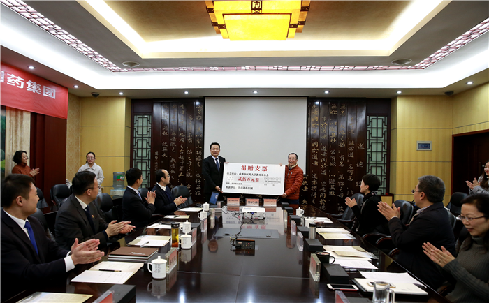 签约仪式上,余曙光与张贵民代表双方签署捐赠协议,学校基金会秘书长黄建明代表学校接受了鲁南制药集团的捐赠支票。