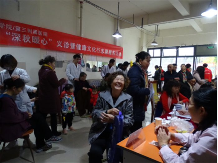 本次义诊活动设置眼科、内科、针灸康复科问诊点、血糖血压测量点以及针灸推拿治疗点。活动中,党员同志和学生志愿者们耐心细致地解答居民们咨询的各种健康问题。专家们平易近人的态度、熟练专业的手法,得到了群众的高度评价。各个治疗点热火朝天,寻诊者络绎不绝。义诊活动持续了一整个上午,期间居民自觉排队,井然有序,气氛和谐。