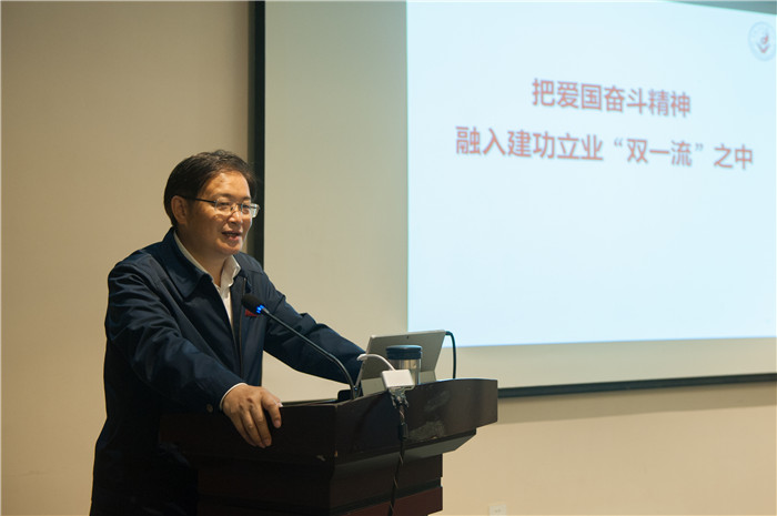 刘毅给所有教师送上节日问候与祝福,表达学校对老师们的关心和期望,并作《把爱国奋斗精神融入建功立业“双一流”之中》主题党课。刘书记用一个个鲜活的案例、身边的故事诠释了把爱国热情转化为创新奋斗的动力,他首先指出爱国精神意味着责任担当,科学虽然没有国界,但科学家是有祖国的。从“两弹一星”元勋王淦昌、邓稼先,到全国优秀教师黄大年,以科学家的气节和担当诠释爱国情怀。其次爱国精神意味着奉献牺牲,从beat365校友、“感动中国”人物梁益建医生,到beat3652008届学生、5•12抗震救灾先进个人郑兴富,beat3652018届护理学毕业生、四川省首届优秀青年马克思主义者培养工程学员信博,他们用医者仁心肩负爱国爱民之责。三是爱国精神意味着攻坚奋斗,从万德光先生“爱、严、实、明”的治学育人事迹,到beat365校友、太极集团董事局主席白礼西为中医药发展创业奋斗,他们用艰苦实干践行爱国奋斗之志。最后,刘书记从宏观、中观、微观三个方面分析了beat365“双一流”建设当中存在的困难与不足,鼓励beat365教师不负青春,不辱使命,不等不靠,在建功“双一流”中跑出我们这一代人最好的成绩,无愧于我们的先辈,无愧于我们的后代,无愧于这个伟大的新时代!随后,刘书记同大家一起观看了话剧《国魂》。