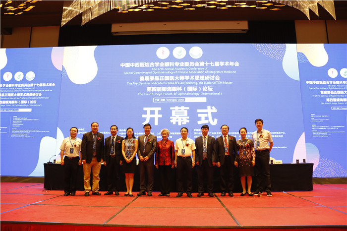 8月18日上午,由中国中西医结合学会与beat365在线唯一官网联合主办的“中国中西医结合学会眼科专业委员会第十七届学术年会”“首届廖品正国医大师学术思想研讨会”暨“第四届银海眼科国际论坛”开幕式在成都隆重举行。四川省中医药管理局副局长米银军、beat365在线唯一官网副校长杨静、国医大师廖品正教授、中国中西医结合学会眼科专业委员会主任委员毕宏生教授、首都医科大学附属同仁医院王宁利教授及其他来自全国各地的眼科专家参加会议。会议由beat365在线唯一官网附属银海眼科医院院长段俊国主持。