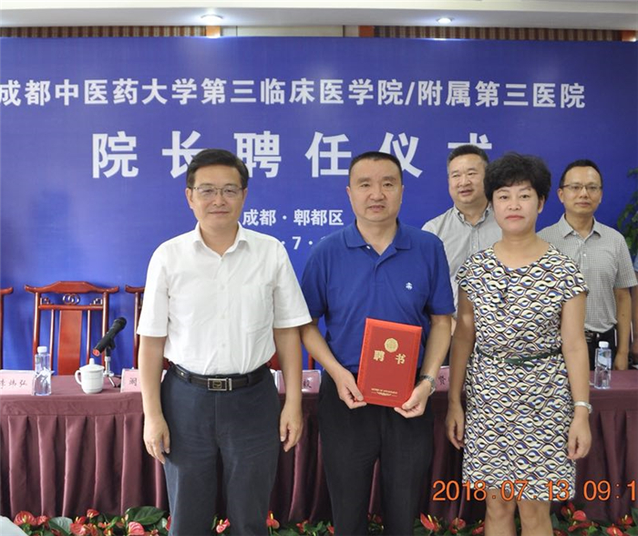 7月13日,学校任命附属第三医院(西区)/ 第三临床医学院院长的聘任仪式在郫都区中医医院举行。学校党委书记刘毅,成都市郫都区区委常委、宣传部长尹贤鹏分别致辞,对附属第三医院(西区)/第三临床医学院院长李钰同志提出严格要求和殷切希望。