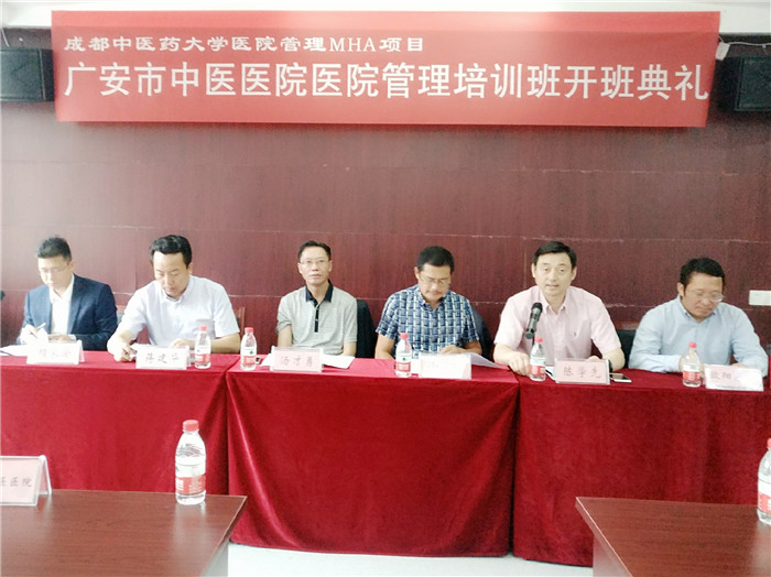 beat365对外合作处处长陈学先、管理学院院长蒋建华,广安市政府副秘书长徐诚、卫计委主任汤才勇,beat365在线唯一官网附属医院医联体联盟特聘医院管理专家欧阳彦成、联盟副秘书长曾友元及参加此次培训班的广安区中医医院、武胜县中医医院、邻水县中医医院,岳池县中医医院和广安市中医医院的60名学员参加开班典礼。