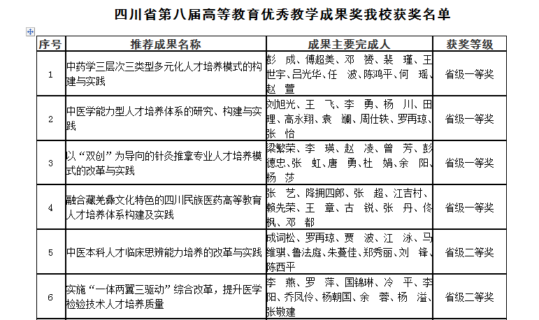 日前,四川省第八届高等教育教学成果奖获奖名单公布,beat36511项教学成果获省级教学成果奖,其中省级一等奖4项,省级二等奖3项,省级三等奖4项。
