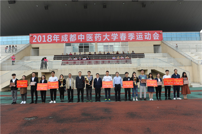 沈涛宣读“关于表彰2017年学校体育竞赛优秀学院的决定”。校领导为获得体育竞赛团体总分前八名的学院颁奖。