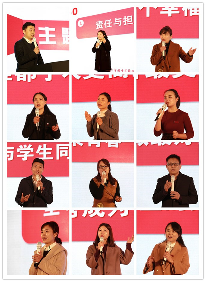 决赛现场,参赛的辅导员们充分展现了在学生思想政治教育中全面的职业技能。在主题演讲中,他们用自身的经历告诉学生什么是奋斗的快乐、什么是成长的幸福;他们用对学生的热爱告诉学生告诉学生什么是责任、什么是担当;他们用敬业的心态为学生服务,时刻关注着学生的成长,让学生的青春时光不被暮气沾染,帮助学生实现梦想,做他们人生的道路上的坚实后盾。在谈心谈话场景再现环节,辅导员们运用各项法律、法规和教育学、心理学、生涯规划、事务管理等工作技能,与学生进入了深入细致的谈话,化解学生面临的一个个问题。生动的演绎、精彩的表现赢得了现场师生雷鸣般的掌声。