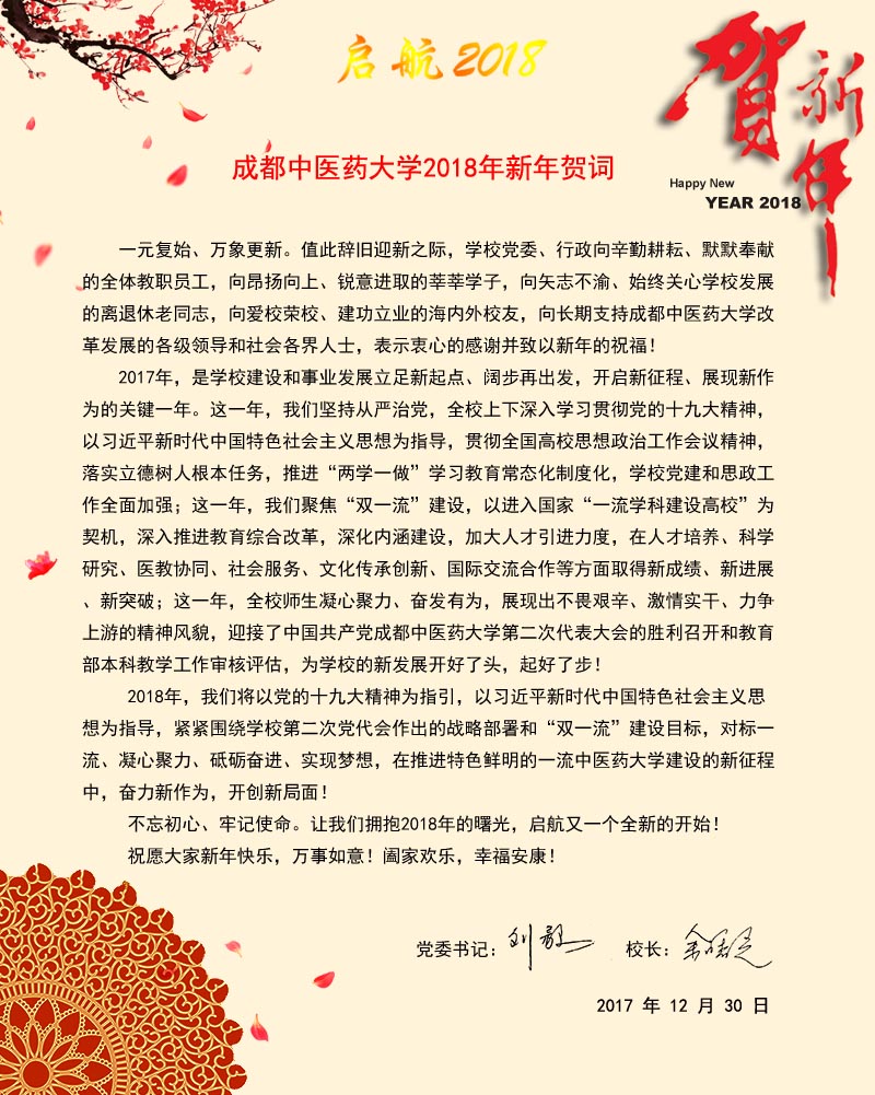 beat365在线唯一官网2018年新年贺词 发布时间:2017-12-30 10:56:00 浏览次数: 次 【字体:小 大】 【打印正文】 上一条:绽放寒冬的成中医“千里光”:学校脱贫攻坚第三方评估工作组结束入户调研平安返校 下一条:临床医学院/附属医院精准扶贫送爱心