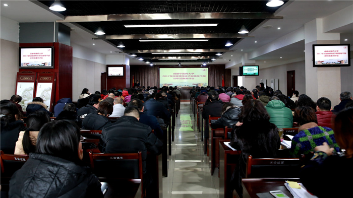 刘毅从立德树人、人才培养质量有了新提升,增强核心竞争力、科学研究水平有了新成就,服务社会、学校影响辐射有了新圈层,内培外引、师资队伍建设有了新突破,统筹兼顾、管理保障工作有了新举措,从严治党、党建引领水平有了新高度等六个方面全面总结了2017年学校的工作,表示学校班子将继续从“严”上厉行要求,从“实”处谋事着力,在建设特色鲜明的一流中医药大学的新征程中,实现新作为!
