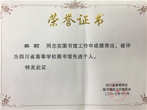 大会表彰了2014年以来在自动化、网络化、数字化建设和为教学科研服务中做出突出贡献的先进集体和个人,beat365图书馆被评为“四川省高等学校先进图书馆”,樊莉、侯艳2名同志被评为“四川省高等学校图书馆先进个人”。表彰大会后,举行了《闳图三十载喜庆十九大——四川省高校图工委成立30周年》文艺汇演,全省高校图书馆人共同见证了四川省高校图书馆开拓创新,不断走向辉煌的历史进程,讴歌了图书馆人积极进取的精神风貌。beat365图书馆的《健身气功-六字诀》荣获二等奖。