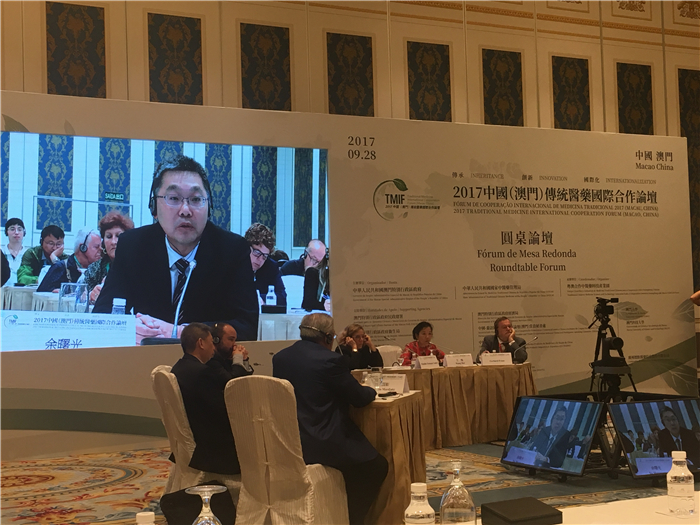论坛期间,余曙光在主题为“传统医药现代化新药设计与国际化合作发展路径选择”圆桌论坛上发表主题演讲,重点阐释中医药新药设计与国际化合作发展路径的原则:必须基于传统医药运用于临床有效的基础上出发;必须基于临床治疗疾病,并以症状改善的真实性为重心;必须建立国际认可的研究本台,且是开放、公认的机构;必须有传统医药的立法,确保有合法的传统医药执业医师参与。余曙光的发言获得与会者的高度评价。余曙光还与来自荷兰、新加坡、印度尼西亚、莫桑比克等国的代表进行了会谈,就推动中医药一带一路发展,加强双边、多边合作进行了交流,达成了共识。