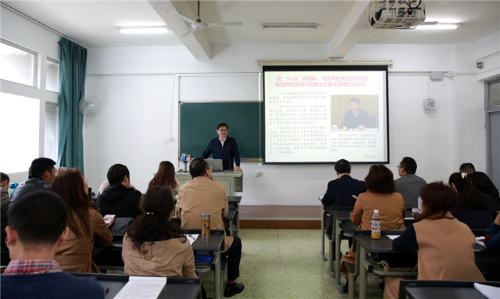 杨支才要求学院教师认真学习刘毅书记讲话,加强对马克思主义经典著作的研读,对马克思主义做到真学、真懂、真信,在教学上做到真实、真信、真讲、真学、真做,不忘初心,砥砺前行。