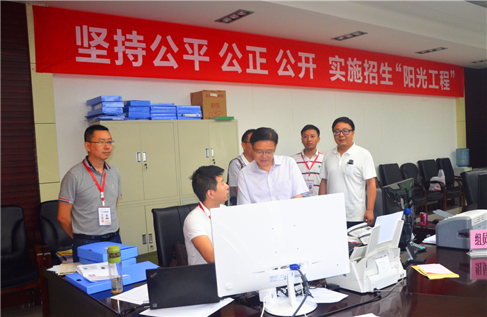 7月21日,学校党委书记刘毅,党委副书记、副校长沈涛在党委组织部部长王军陪同下,前往学校招生录取场,看望本专科招生录取工作人员,并检查指导招生录取工作。校领导与工作人员亲切交谈,对大家坚守岗位表示感谢。
