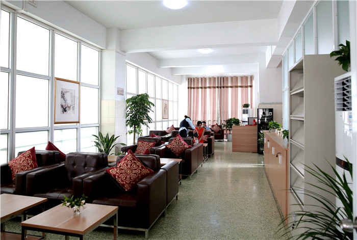 教师休息室分别位于B教5楼、C教2楼、D教2楼和4楼共4间。室内陈设优雅,配挂富有壁画图案的窗帘和凸显学校特色、具有历史文化底蕴及中国传统文化艺术元素的字画作装饰;摆放的绿色植物,使休息室生机盎然。休息室配备有沙发、茶几、衣帽架、报刊架、空调、无线网络,并准备有热水、茶、咖啡等饮品,还安排了专人为老师们提供温馨、周到的服务。