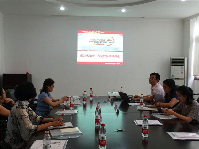 6月2日下午,养生康复学院党总支在十二桥校区召开专题学习会,传达学习四川省第十一次党代会精神及学校党委中心组(扩大)学习会精神。学院各教研室主任及党政办公室人员参加学习会。会议由学院副院长王晨主持。