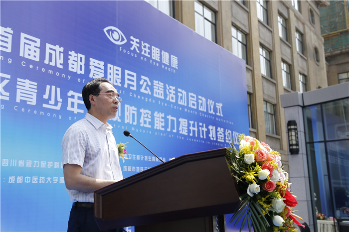 成都市卫生和计划生育委员会主任谢强在讲话中高度肯定了首届成都爱眼月公益活动对普及科学的用眼知识、预防各类眼疾、提高青少年眼健康具有重要的意义,希望主办单位精心组织好此次公益活动,积极营造全社会关心眼健康,特别是青少年近视防控的良好氛围。全市卫计系统将积极发挥职能作用,主动协同推进爱眼月各项工作。