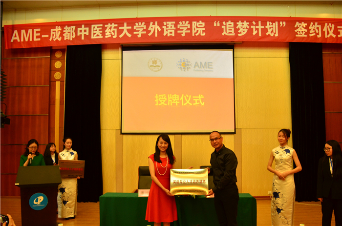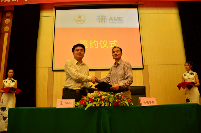 5月11日下午,外语学院-AME出版社“追梦计划”签约仪式在温江校区举行。AME出版社社长汪道远、副社长方艳、资深科学编辑徐小悦和校团委、外语学院领导出席签约仪式。